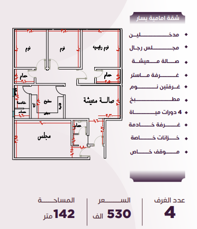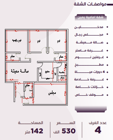 السعر: 530 ألف • المساحة: 142 متر