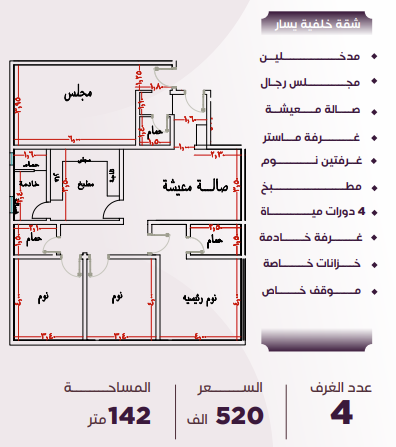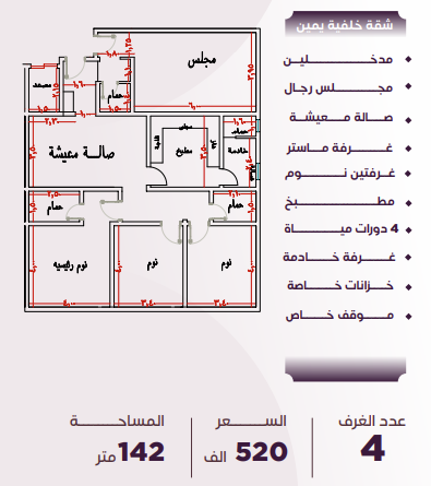 السعر: 520 ألف • المساحة: 142 متر